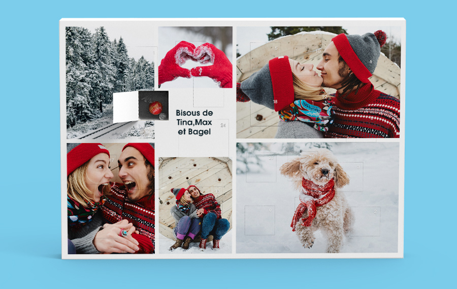 Un calendrier de l’Avent est indispensable en décembre pour apporter l’esprit de Noël chez vous. Et c’est encore plus beau lorsqu’une superbe photo de famille ou un moment particulier de l’année vient décorer ce calendrier de l’Avent. Pourquoi ne pas saisir l’occasion de faire une belle surprise à Mamie et Papy?